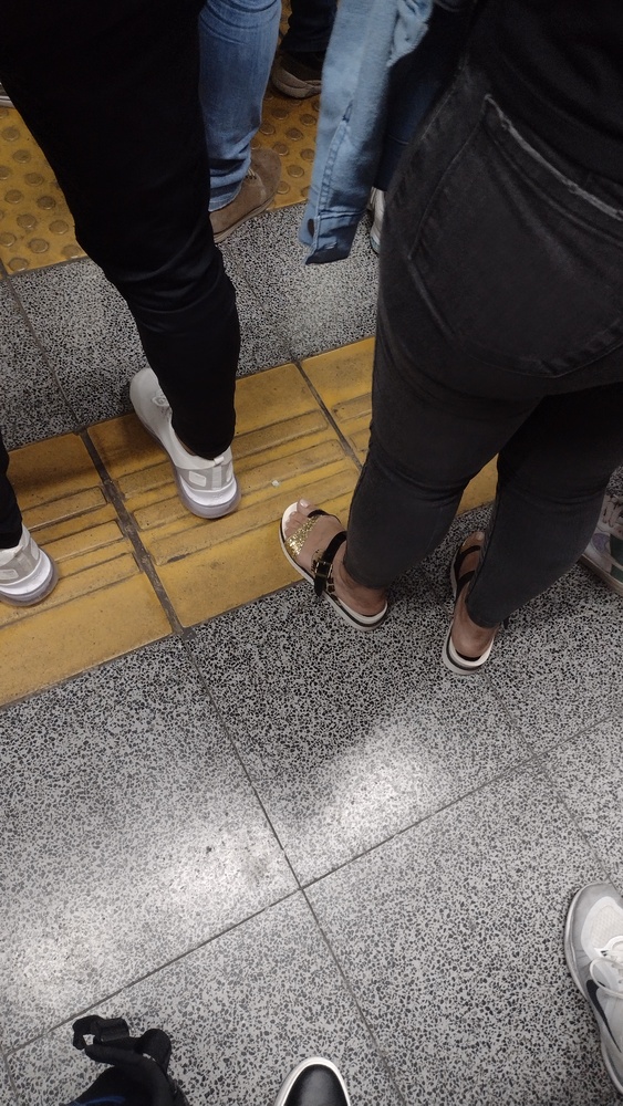 > Pies de personas desconocidas
